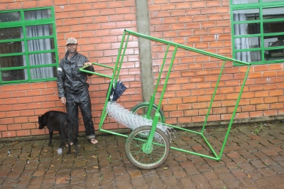 Estou iniciando o trabalhoo como reciclador de materiais e este carrinho vem em boa hora, porque é a chance de ganhar meu sustento honestamente, agradece Justino Gomes, reciclador e morador da Rua Raul Pila no Bairro Hípica.